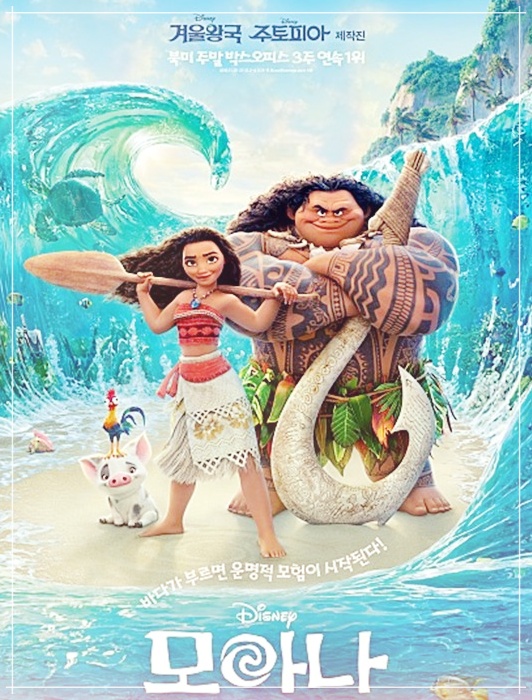 스스로 바다를 선택한 소녀 모아나는 저주에 걸린모투누이 섬을 구하기 위하여 멀고 먼 항해를 떠나 기로 결심히게되고 저주를 풀 수 있는 힘을 가지고 있는 전설의 영웅 마우이를 만나고 설득하여 험난하고 운명적이 바다모험을 떠나게 되는 작품입니다.