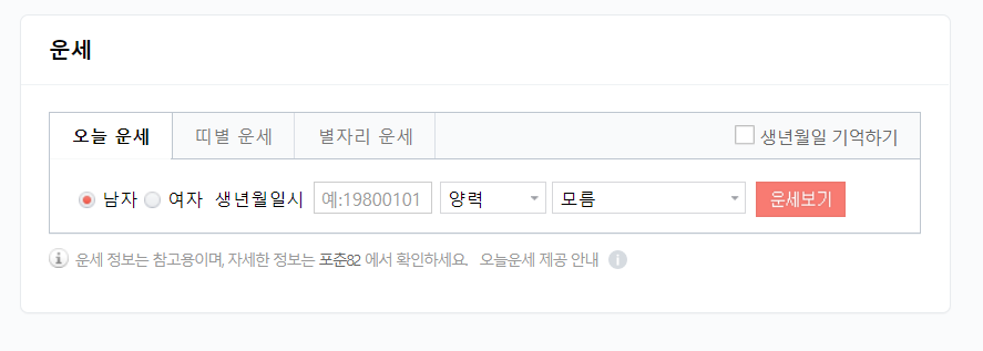 다음사이트 운세는 띠별과 생년월일등으로 무료로 운세를 볼수 있는 곳입니다.