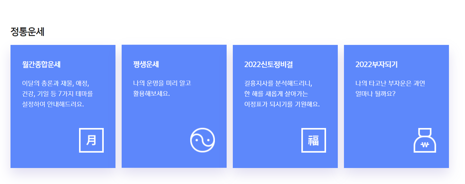 원별 종합 운세,평생운세,토정비결등 다양한 운세들을 무료로 볼수 있으니