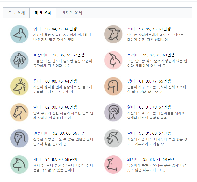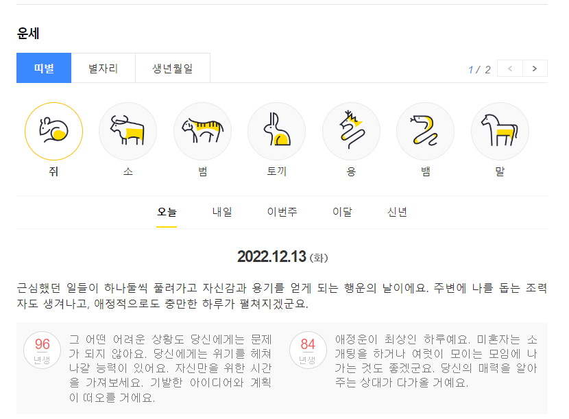 다음사이트 운세는 띠별과 생년월일등으로 무료로 운세를 볼수 있는 곳입니다.