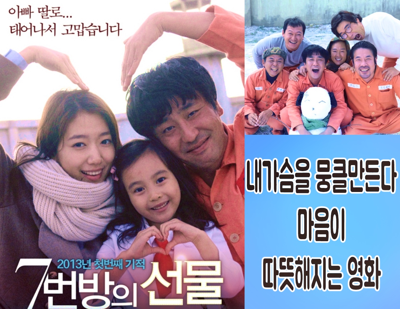 지적장애가 있지만 딸을 사랑하는 부모의 마음이 그대로 전달되는 것 같았으며 자시을 키우는 부모라면 모두 공감할 영화라고 생각이 들었습니다. 과연 나쁜사람들이 잡혀있는곳 안으로 아이가 들어올 수 있을까?? 하면서도 영화니까 가능했던 거겠죠?? 다소 조금 억지 같은 면도 있었지만 그것이 과하지가 않아 보기 좋았습니다. 그 때문에 영화가 더 풍성하고 재미있었으며 감동을 주는 부분들이 있지 않았을까 하는 생각을 합니다. 이영화가 너무 안타까우면서도 웃음 짓고 , 눈물을 펑펑 쏱아내는 매력 있는 영화라고 생각합니다.