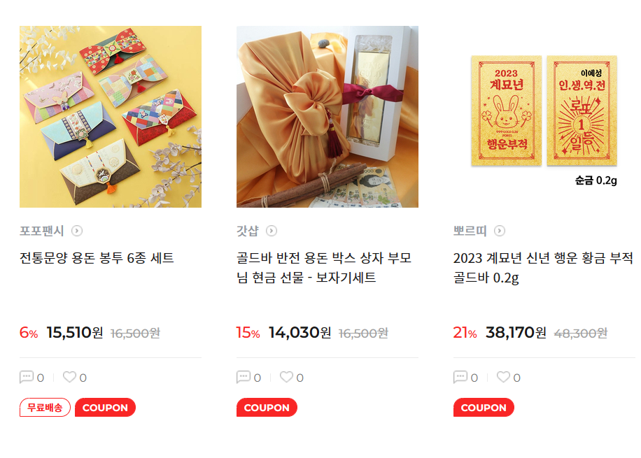 한우,곶감,용돈, 등등 섵낵의 폭이 넓어서 좋긴한데