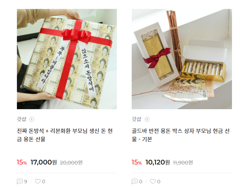 혹시나 부모님께 용돈으로 선물을 생각 하고 계신분들이라면